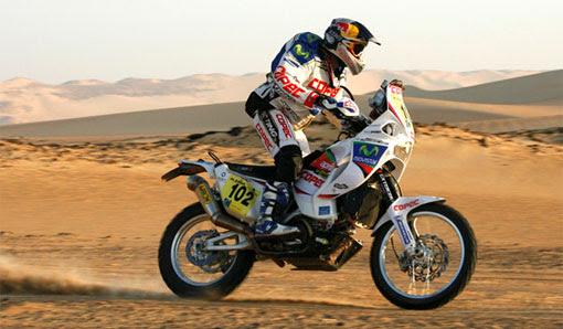 Toto bola labutia pieseň dvojvalcov na Dakare, lenže v reglementoch sú dvojvalce do 450 ccm ukotvené dodnes. Jednovalce medzitým dospeli s technológiami Moto GP k svojim limitom a k výkonom tesne pod hranicu 80 koní. Prešľachtené motory idú non stop po obmedzovač, odľahčuje sa čo sa dá, aj kotúče sú tenké ako list papieru, hmotu inžinieri úplne centralizovali, skrutky a osky sú iba titánové a každý špekuluje, ako ešte ubrať na váhe, keď s výkonom veľmi nepohnú.